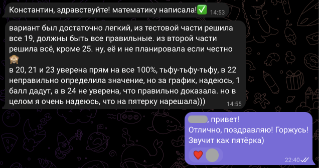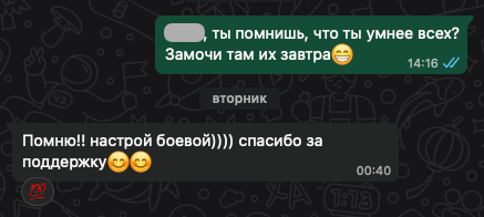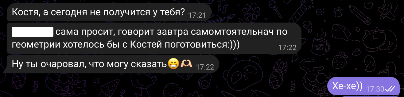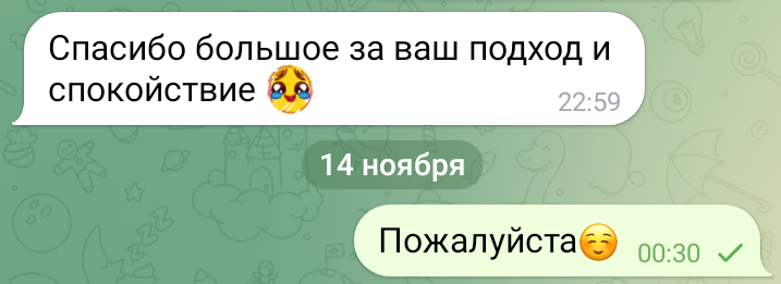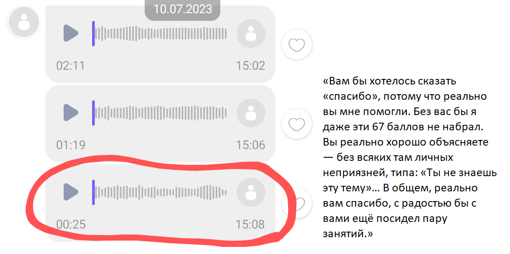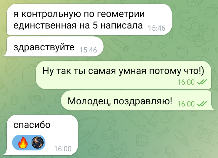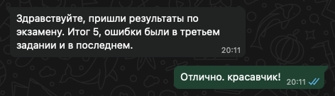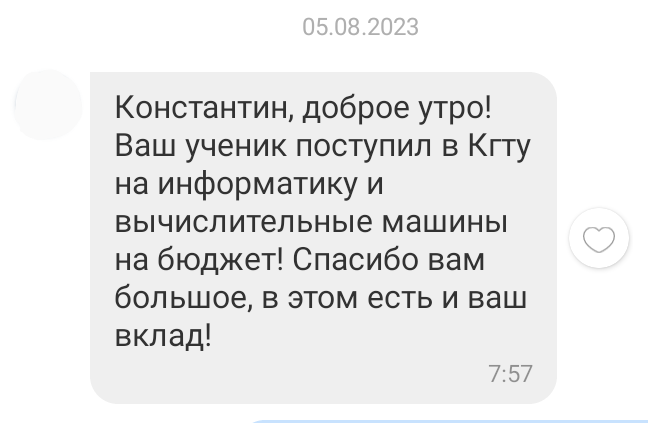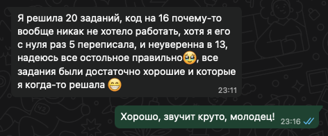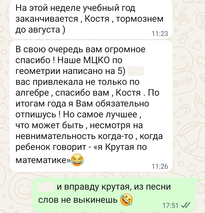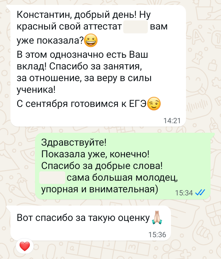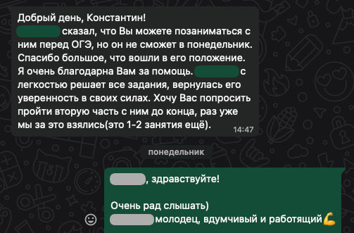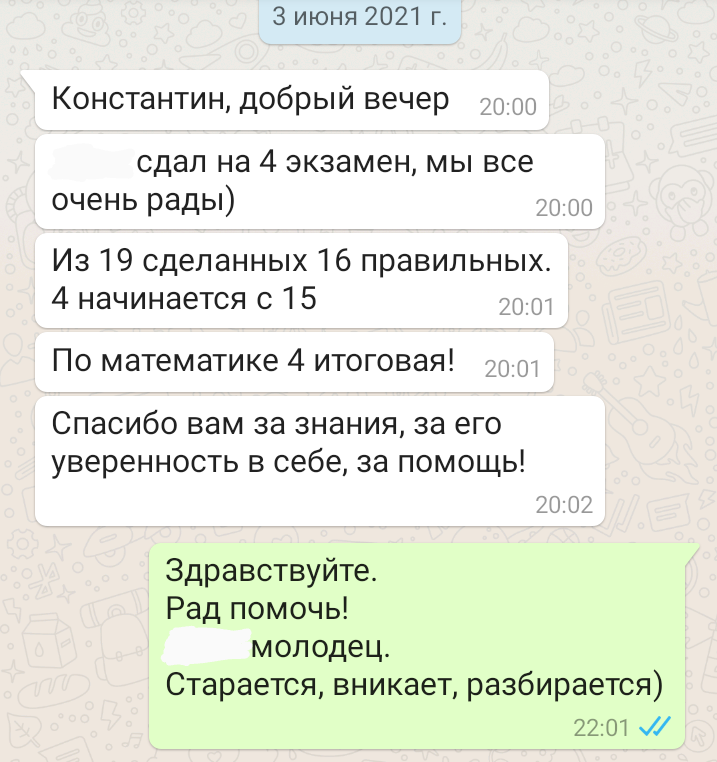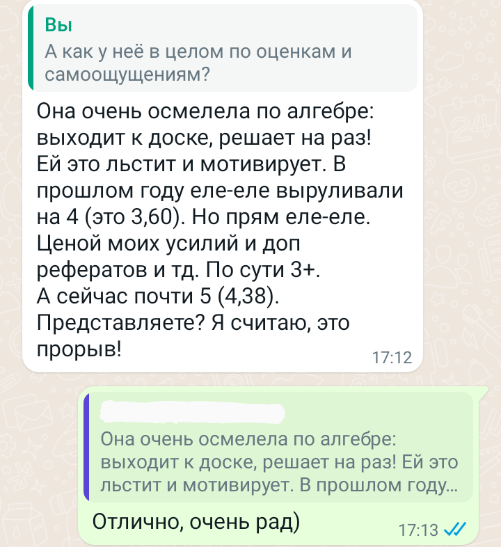 Помогаю ученикам во внеурочное время и поощряю их к самостоятельным занятиям. Не гарантирую, что отвечу сразу, но, как только могу, пишу сообщение или записываю голосовое.