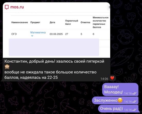 Помогу подготовиться к ОГЭ и ЕГЭ, «подтянуть» программу, разобраться в сложных темах, почувствовать себя увереннее в предмете.